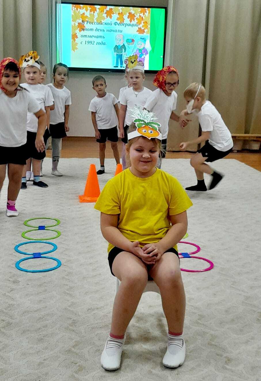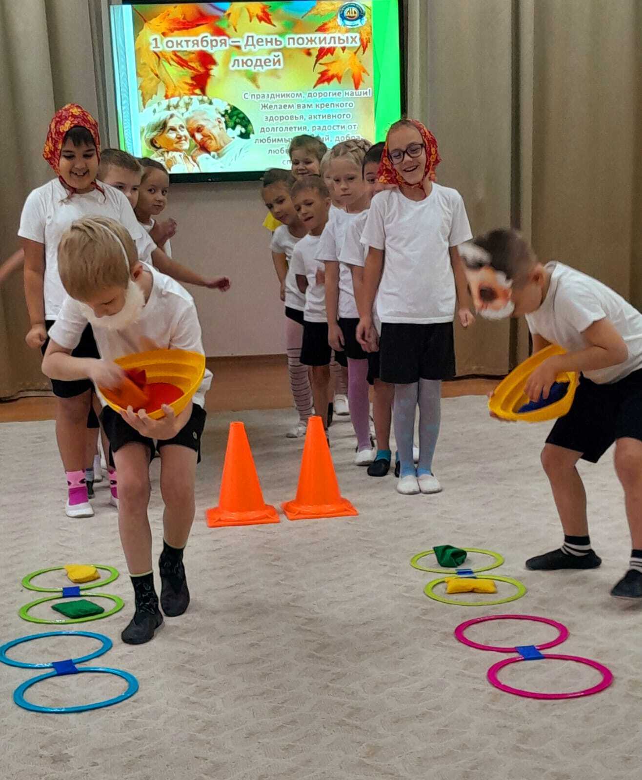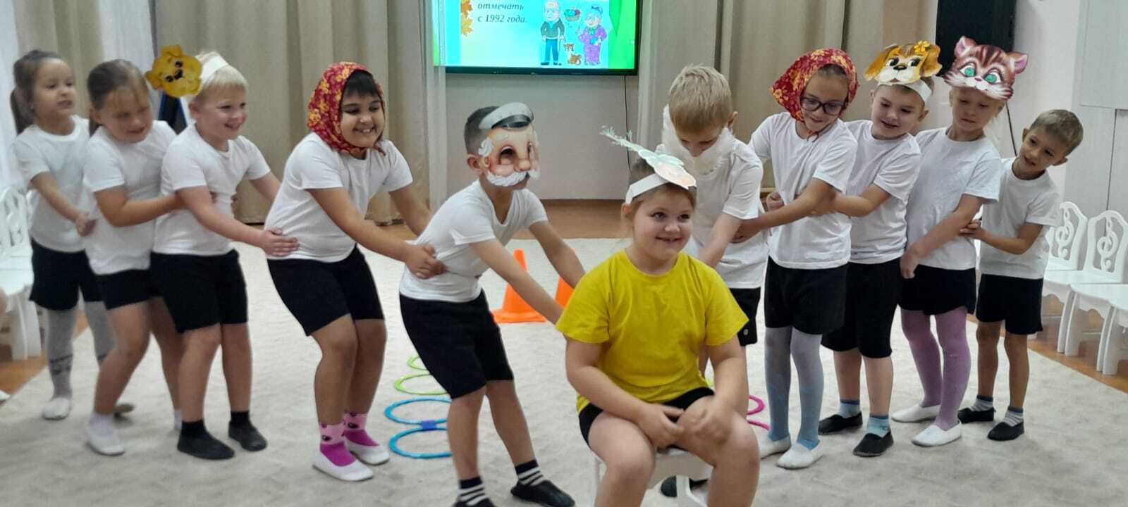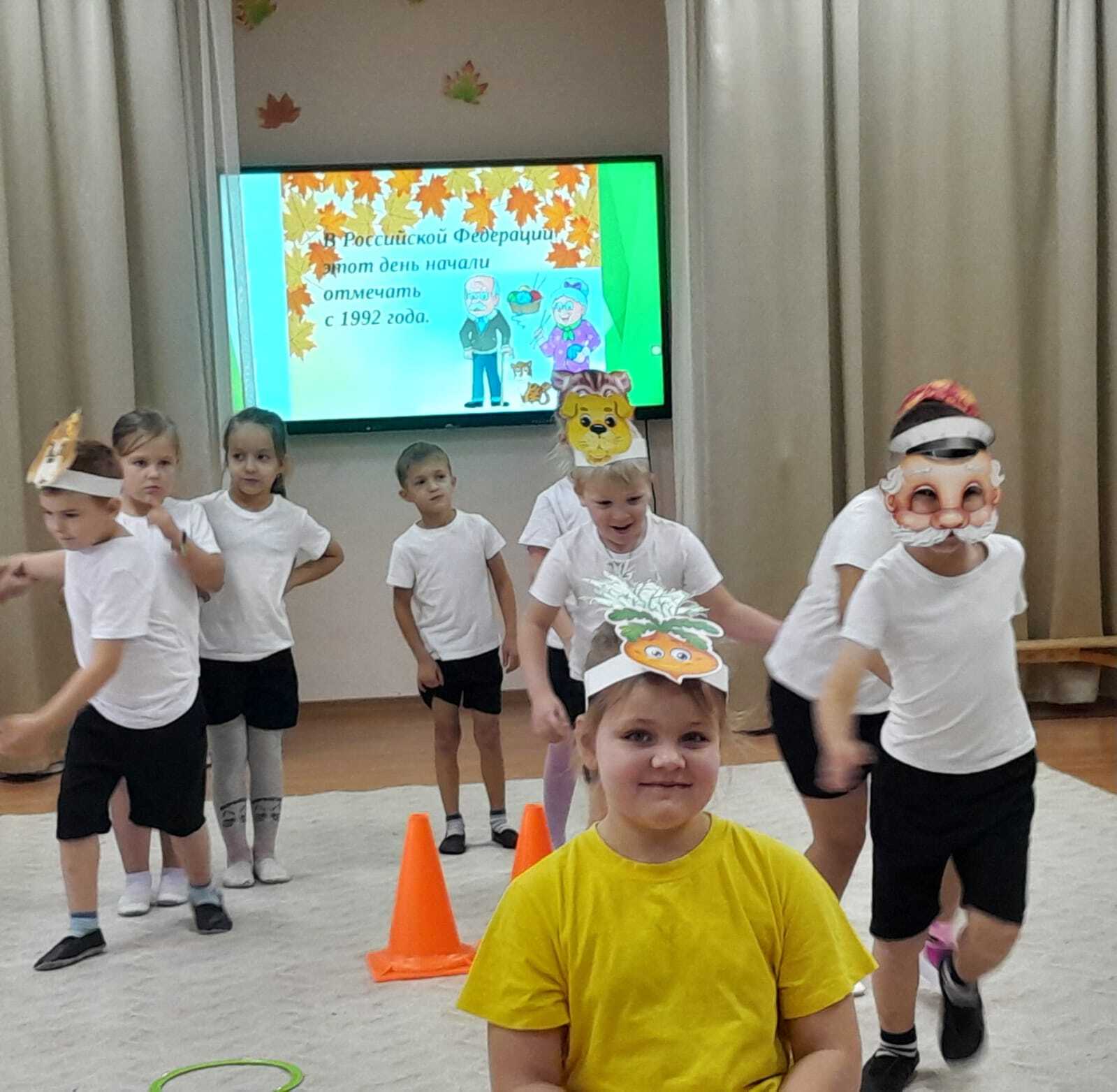 В преддверии праздника в детском саду были проведены беседы, чтение и обсуждение художественных произведений. Детям было рассказано, как важно оказывать внимание пожилым людям, как это здорово дарить частичку доброты. Дети вспоминали своих бабушек и дедушек, как они их балуют, рассказывали о том,как их любят, как вместе проводят время: читают сказки, мастерят, пекут "вкусняшки".Играли в игры " Помоги собрать урожай дедушке " , Принеси продукты из магазина " " Накрой на стол для дедушки и бабушки ".