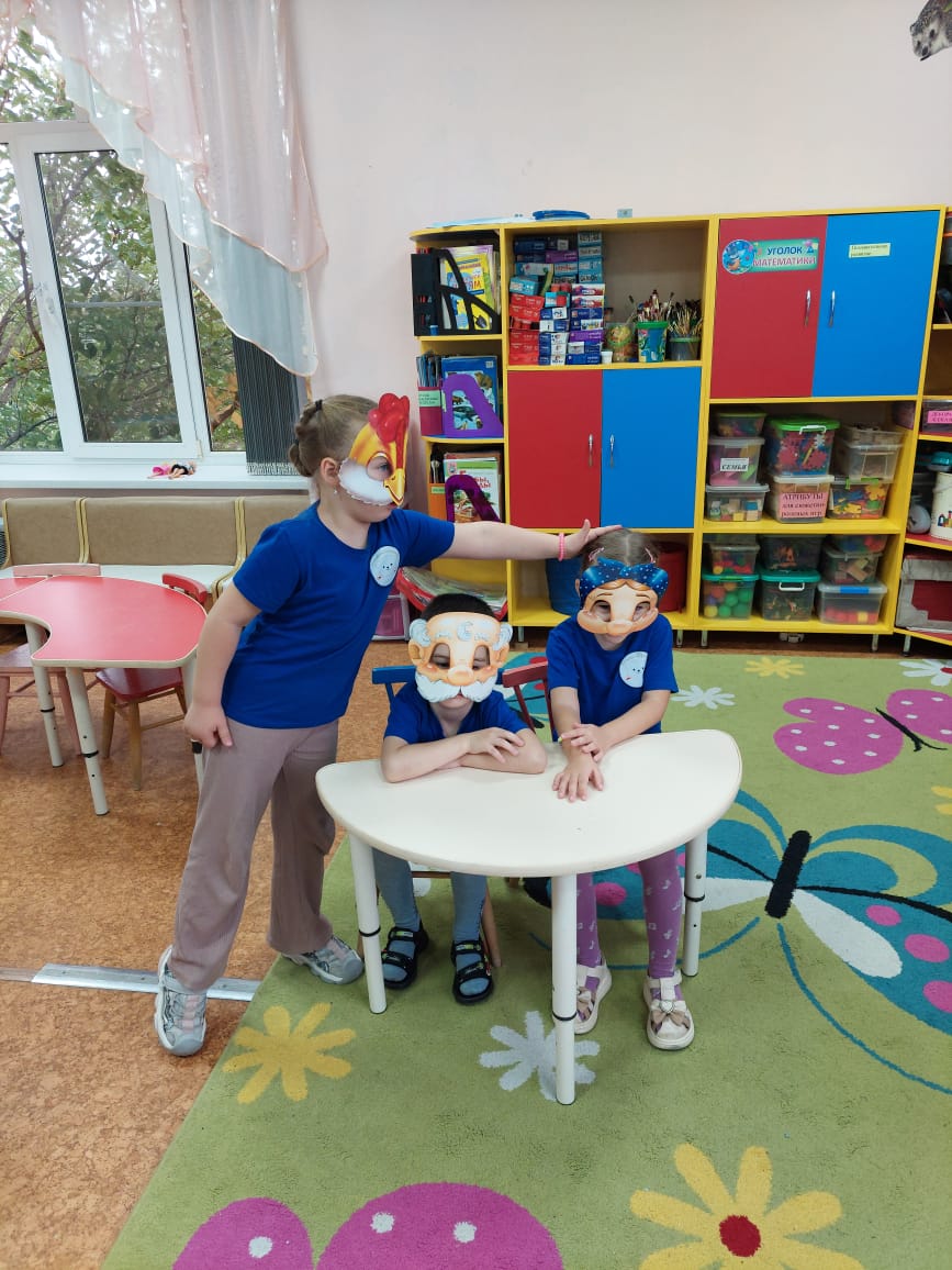 Ребята продолжают формировать знания о русских народных сказках, правильно называть героев, диалогическую речь, развивать физические навыки, воспитывать умение слушать, любовь к театральному искусству, быть доброжелательными и отзывчивыми.