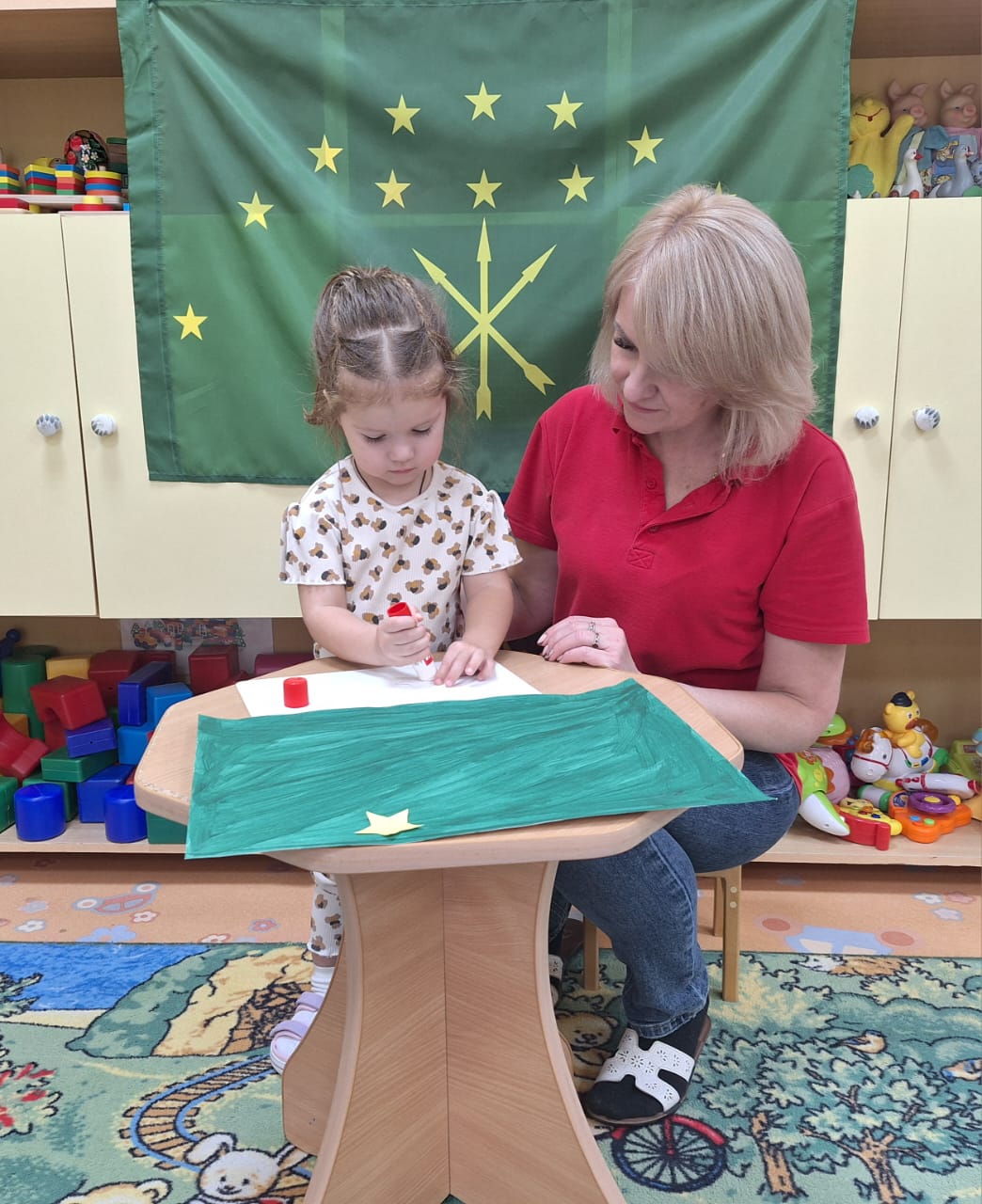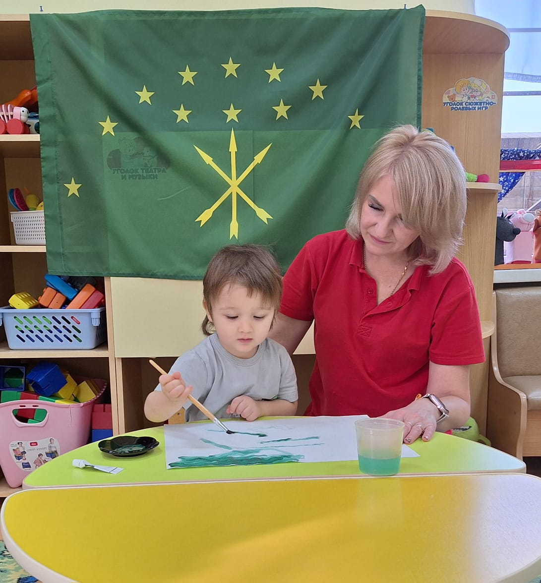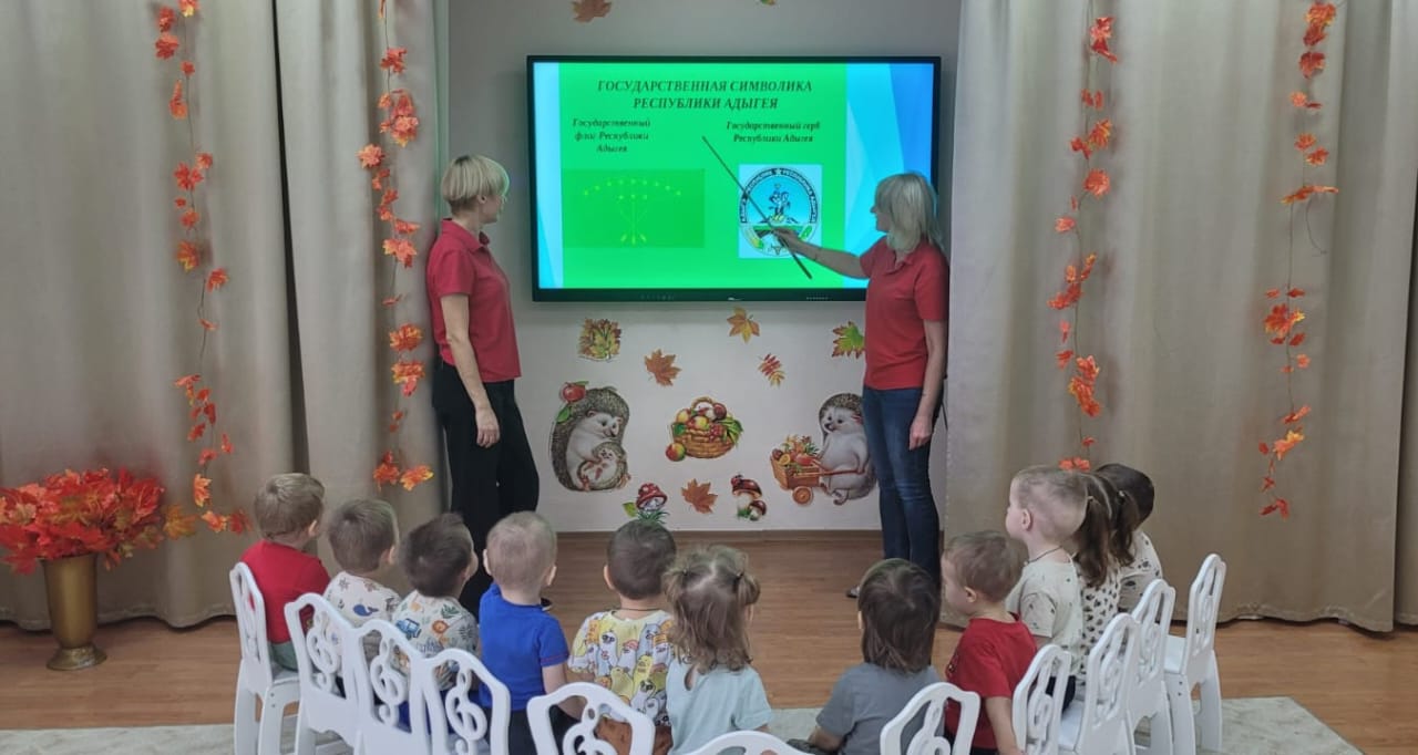 В рамках фестиваля культур народов Дона "Дружбой все едины "в группе раннего возраста прошёл тематический день "Флаг Республики Адыгеи". Ребята, совместно с педагогами Певневой Е. В. и Шматковой М. В., с большим интересом познакомились с особенностями флага данной республики,рассмотрели иллюстрации.