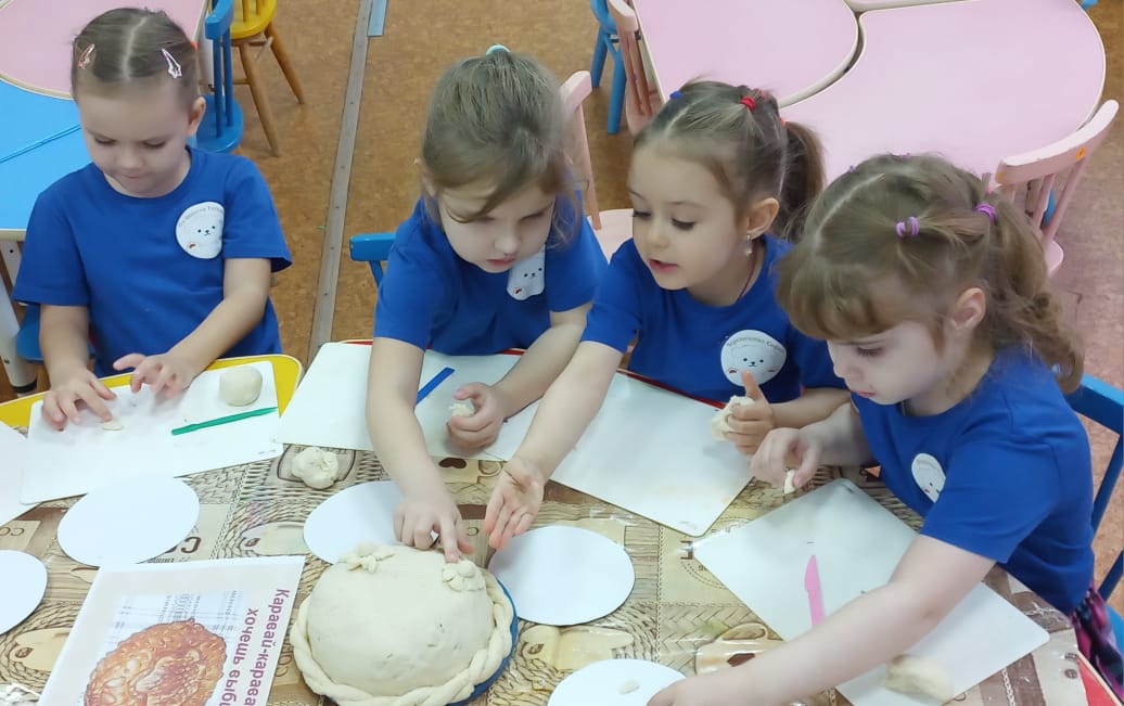 В рамках реализации Всероссийского проекта "Цена крошки хлеба велика" воспитанники средней группы реализовали краткосрочный проект "От зерна до каравая" Ребята продолжают уточнять и закреплять знания о хлебобулочных изделиях, формировать умения передавать форму, пропорции используя ранее усвоенные приемы лепки, воспитывать интерес к традициям своего народа. Ребята проявляли творческую инициативу и самостоятельность при выборе украшения для каравая.
