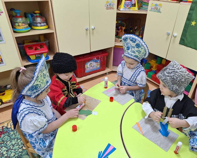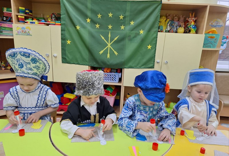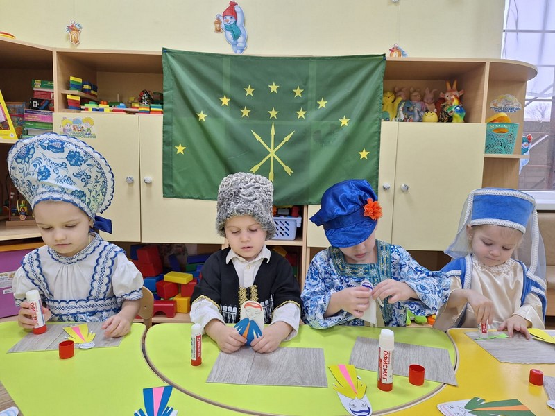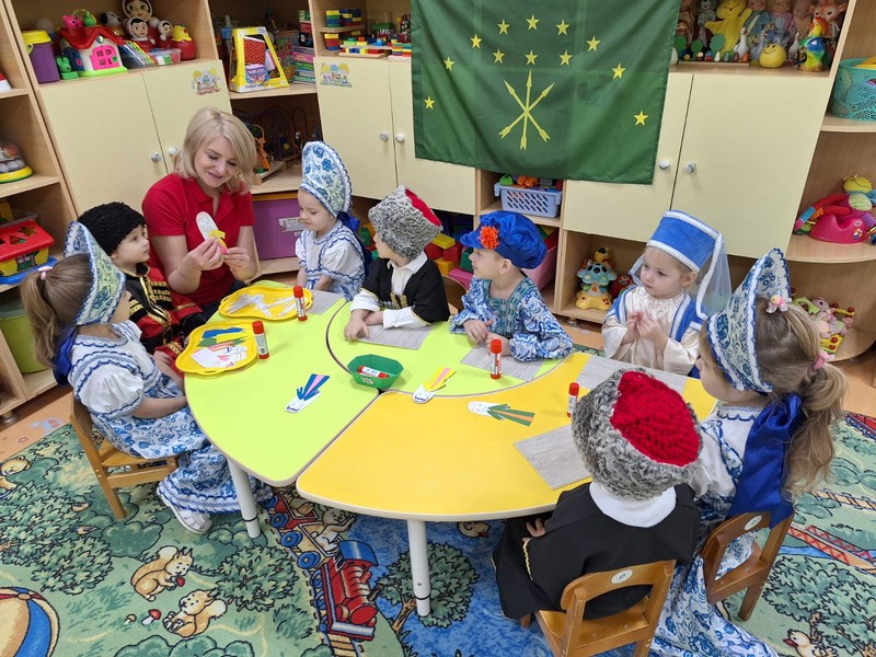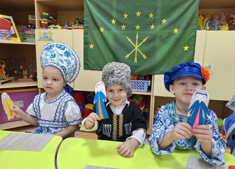 В рамках фестиваля культур народов Дона "Дружбой все едины", педагоги группы раннего возраста провели мастер-класс "Традиции и обычаи народов Адыгеи". Девчонки и мальчишки познакомились с культурой и бытом Адыгейского народа, изготовили своми руками кукол в национальных адыгеских костюмах.