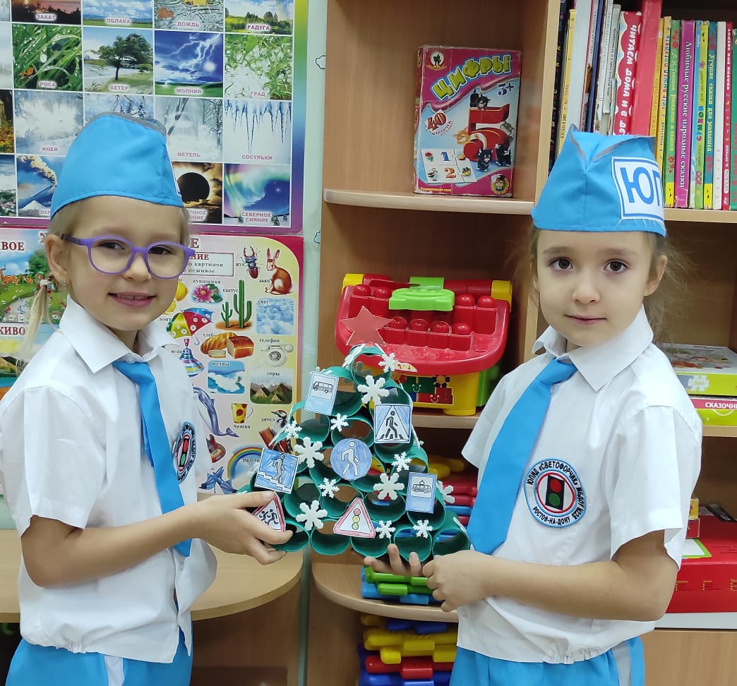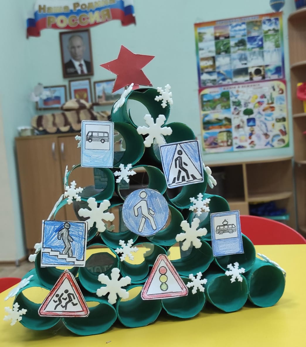 Поэтому ребята создали новогоднюю ёлку, украшенную тематическими элементами, связанными с ПДД.