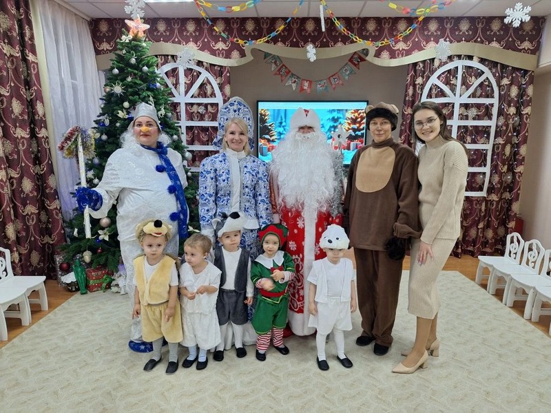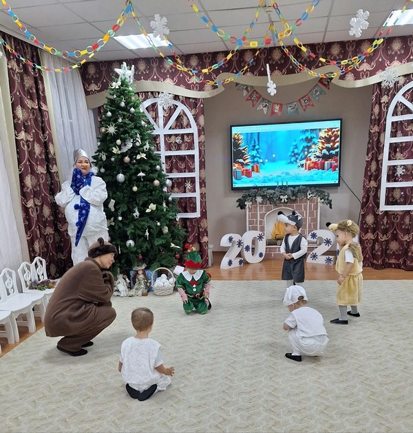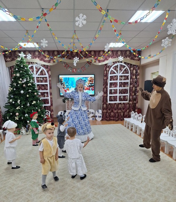 Малыши были нарядные, превратившись в весёлых зайчиков, красивых снежинок, загадочных елочек, храбрых гномов Все закружились в новогоднем хороводе. Ребята веселились у нарядной ёлочки