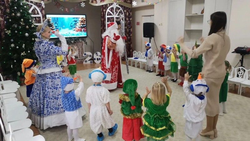 с добрым Дедушкой Морозом, красавицей Снегурочкой, озорным Снеговиком, снежной Королевой, добрым Мишкой.Все танцевали, пели песни, читали стихи, водили хороводы и с удовольствием участвовали в играх. Ребята получили массу положительных эмоций и долгожданные подарки- "Волшебные яблоки" из рук Деда Мороза.
