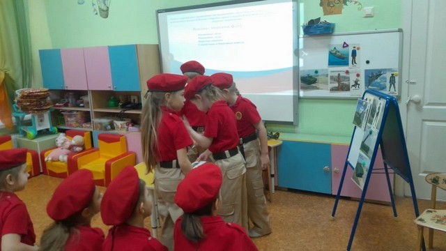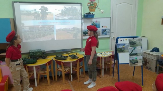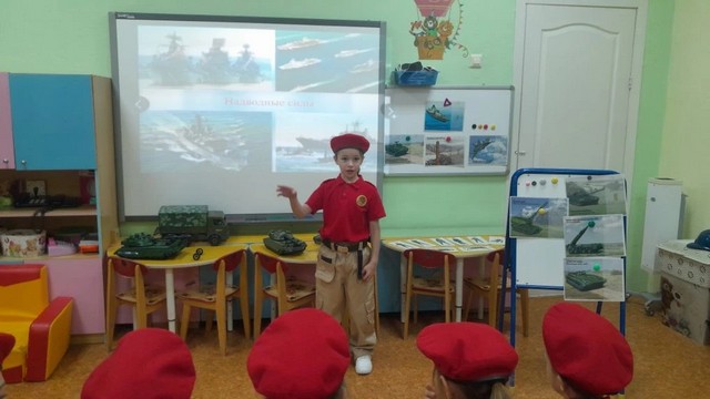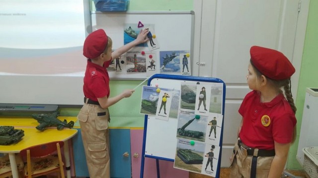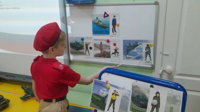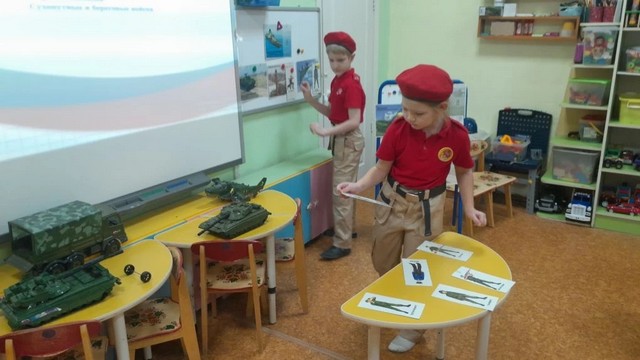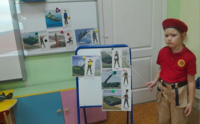 В рамках реализации календарно-тематического плана, маленькие патриоты МБДОУ 225 отряда "Барсы", совместно с наставником приняли участие в тематическом занятии "Виды и рода войск Российской армии".