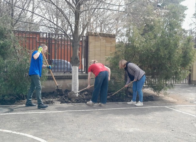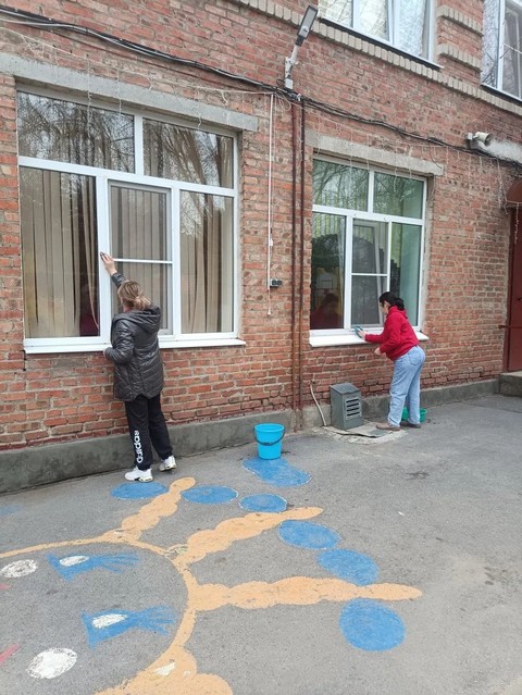 В ходе субботника были выполнены работы по очистке территории от мусора, побелены бордюры, приведены в порядок малые архитектурные формы, помыты окна.